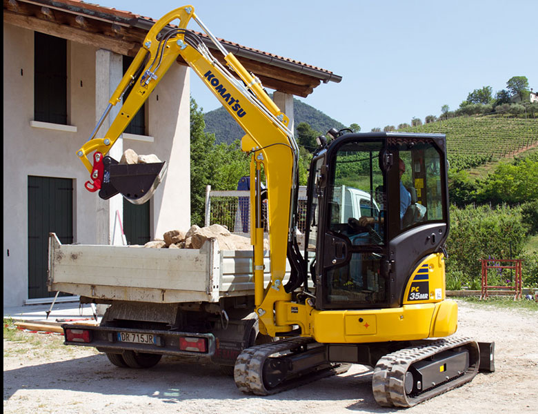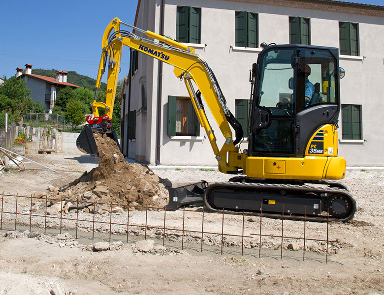 Compactness The short-tail PC35MR-5 delivers optimal power and digging speed, even in confined spaces where traditional machines can’t work: yards, road works, demolition sites, sewers, etc. Sturdy and very stable, it guarantees maximum safety and offers complete operator confidence in any working conditions.