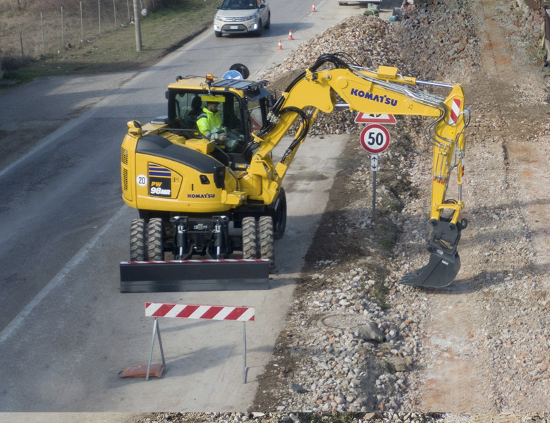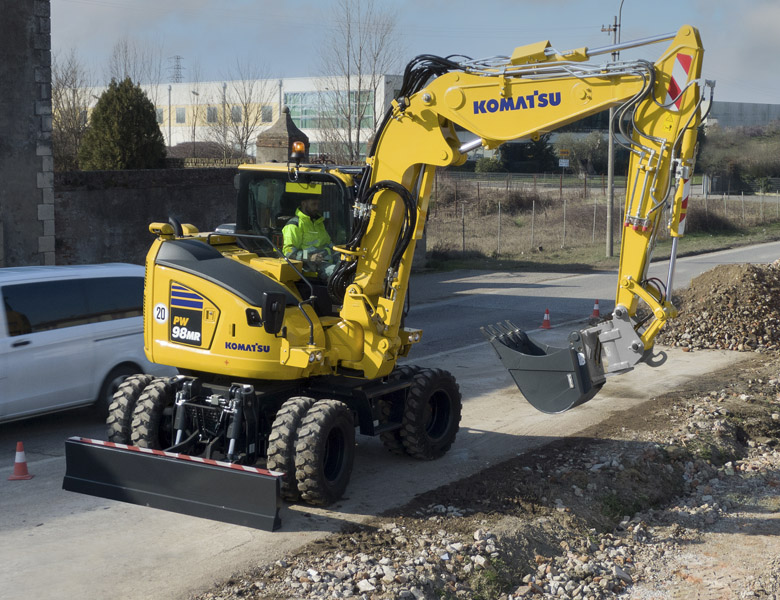 The Komatsu PW98MR-11 tight-tail excavator bridges the gap between compact and construction-sized machines and can work in a wide variety of construction, utility and landscaping applications with improved efficiency. It features lower fuel consumption, improved operator comfort and enhanced serviceability.